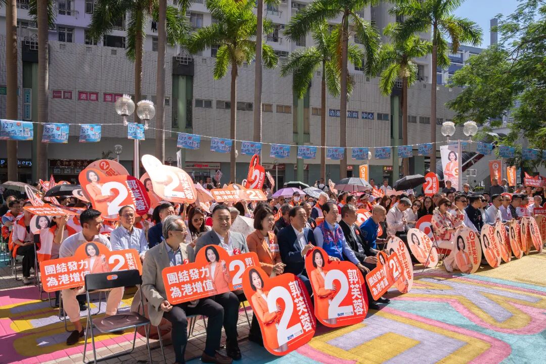 11月16日,“郭芙蓉集氣大會”在香港葵湧東地區舉行,爲民建聯成員、新界西南選區候選人郭芙蓉參選立法會集氣。黑龍江省政協常委、香港黑龍江社團總會主席韓世灝,黑龍江省政協常委、香港黑龍江社團總會名譽顧問肖凱,黑龍江省政協委員、香港黑龍江社團總會名譽顧問姚逸安,黑龍江省政協委員遊偉光,以及香港黑龍江社團總會榮譽主席徐慧、梁小燕等出席大會,爲郭芙蓉助力,支持選舉活動。