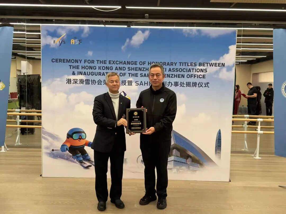 继中国首场国际雪联(FIS)认证的室内国际滑雪赛事正式开幕后,港深在冰雪领域合作再添里程碑。中国香港滑雪总会与深圳市滑雪协会互相授牌、SAHK深圳办事处正式揭牌,深港冰雪合作从赛事共办迈向机制性深度融合——资源共享、人才共育、标准共输,为粤港澳大湾区打造冰雪产业龙头引领范式按下“加速键”。